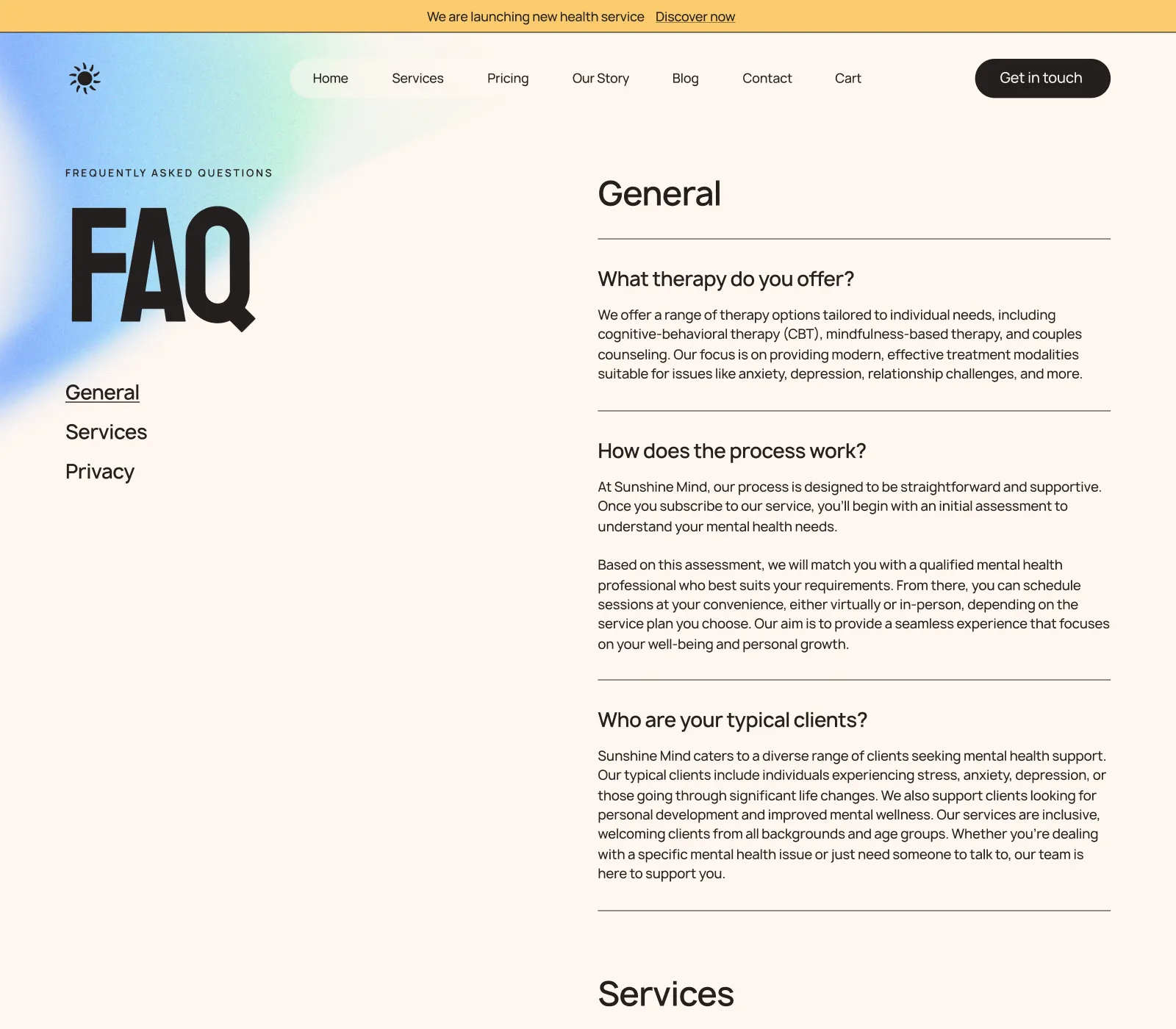 Sunshine Mind Template comes with eCommerce set up, so you can start selling your services straight away.